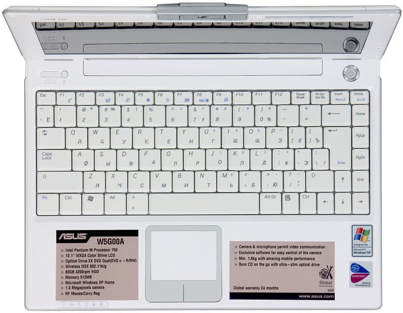 Ноутбуки ASUS в настоящее время достаточно узнаваемы. Фирменный дизайн серия W5 унаследовала от предшественников — линейки ноутбуков ASUS М5. На первый, невнимательный взгляд, основных отличий два — появилась вращающаяся камера и исчезла защелка крышки. На деле, конечно, изменений гораздо больше, в том числе и в расположении портов.