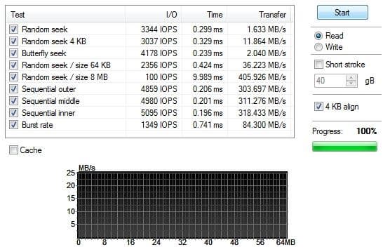 Перепроверка дает те же цифры. По просьбам трудящихся — скорость IOPS.
