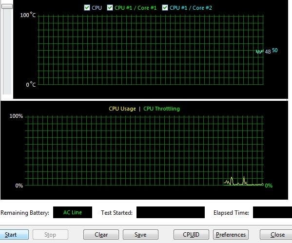 Перед началом теста температура находится на неплохом уровне в 50 градусов.