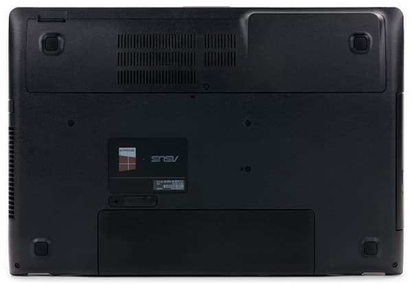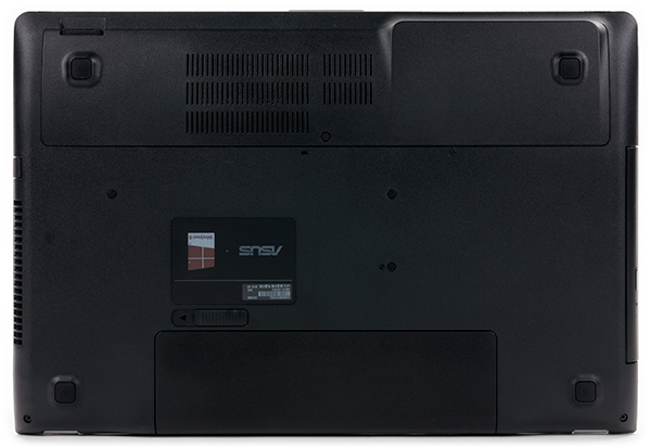 А вот нижняя панель корпуса выполнена из черного пластика, хотя во многих ноутбуках Asus N-cерии корпус целиком, включая и нижнюю панель, выполнен из металла. Впрочем, материал нижней панели корпуса — это вопрос не принципиальный.