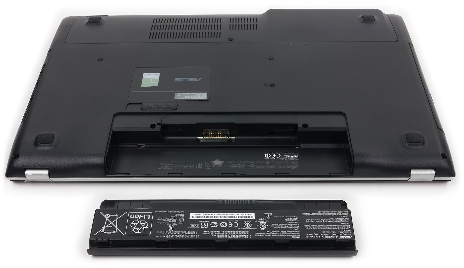 Аккумуляторная батарея в этом ноутбуке съемная (что уже становится редкостью), а ее емкость составляет 56 Вт·ч.
