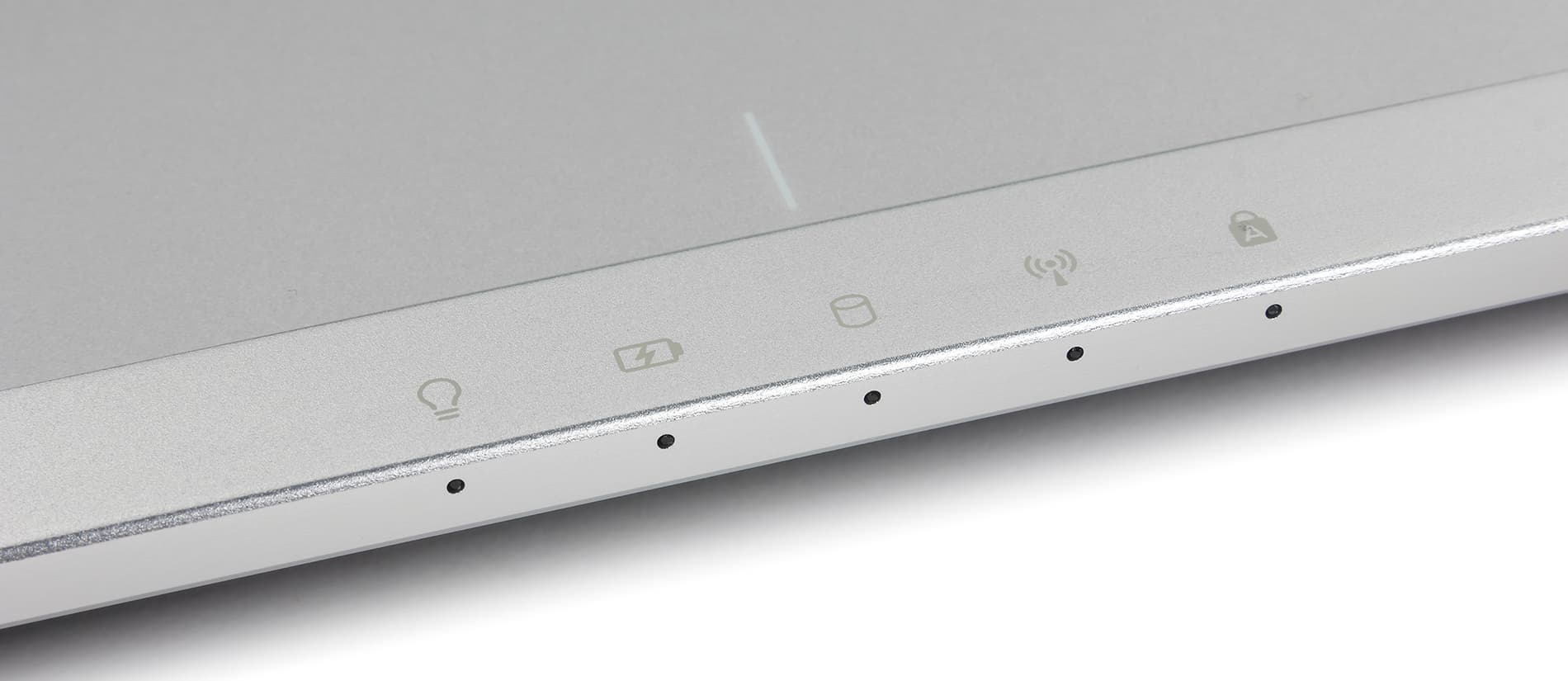 Все индикаторы состояния (а всего их пять штук) вынесены на переднюю грань корпуса рядом с тачпадом. При этом индикаторы остаются видны даже в закрытом состоянии ноутбука.