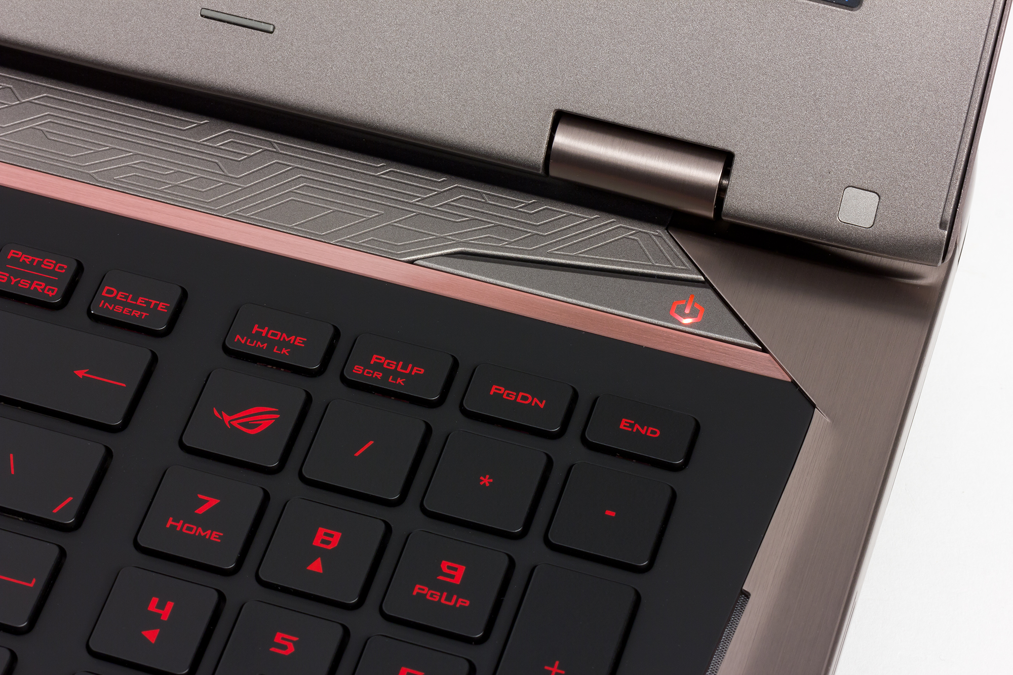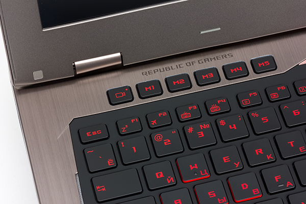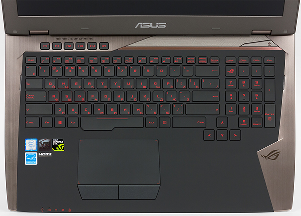 Мы бы оценили клавиатуру в ноутбуке Asus ROG G701VIK как отличную. Она почти не прогибается при нажатии на клавиши. Кроме того, клавиши слегка подпружинены и при печати ощущается легкая фиксация нажатия.