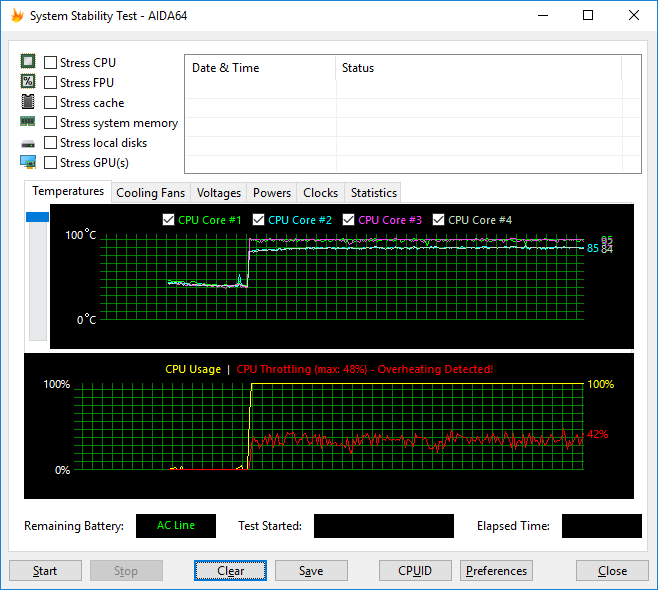 По результатам тестирования ноутбука в режимах стрессовой загрузки можно сделать вывод, что с охлаждением процессора ноутбук Asus ROG G701VIK в целом справляется. В режиме без разгона вообще не возникает никаких проблем, а режимах с разгоном температура процессора близка к критической и поддерживается на допустимом уровне путем снижения тактовой частоты.
