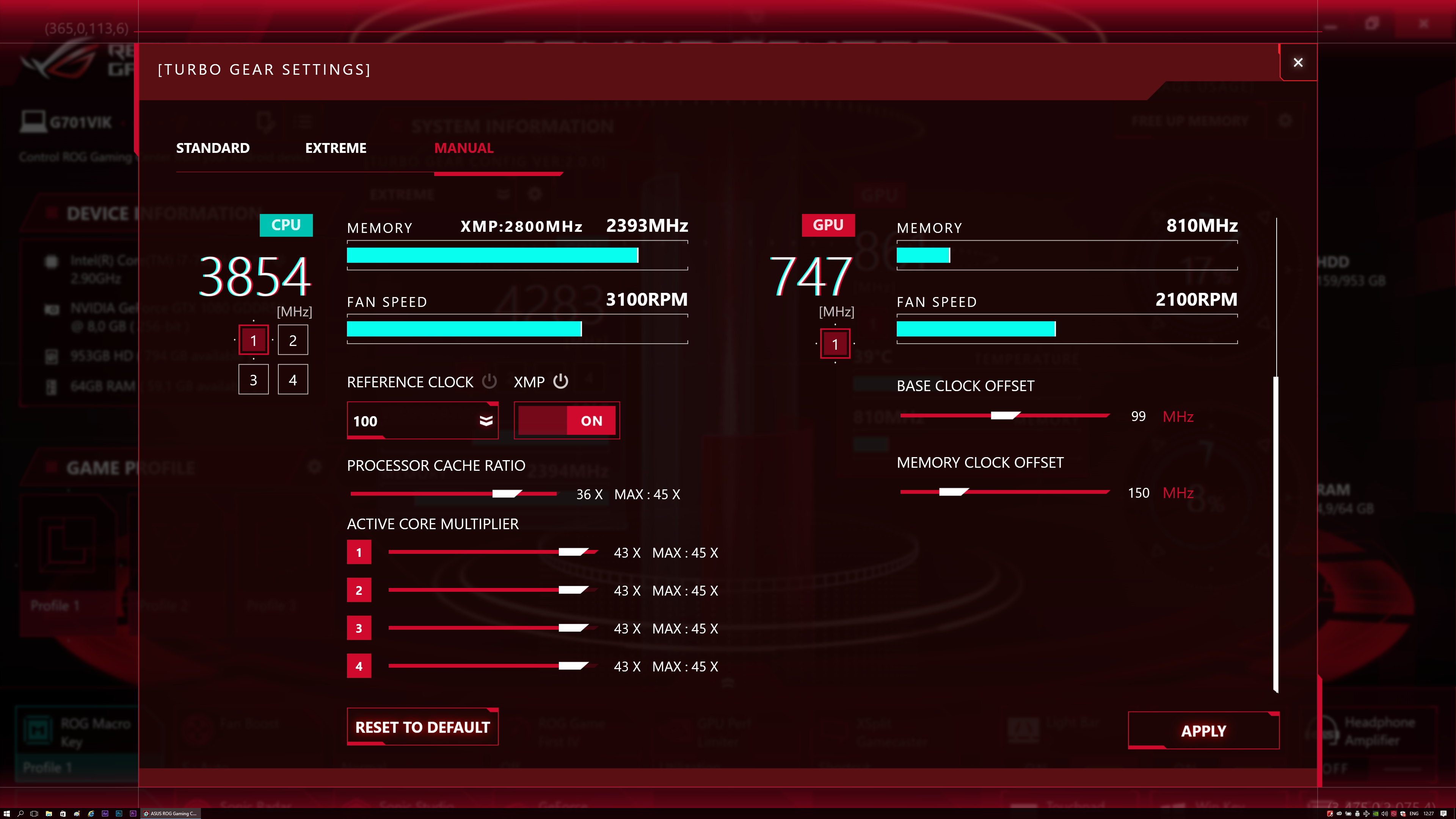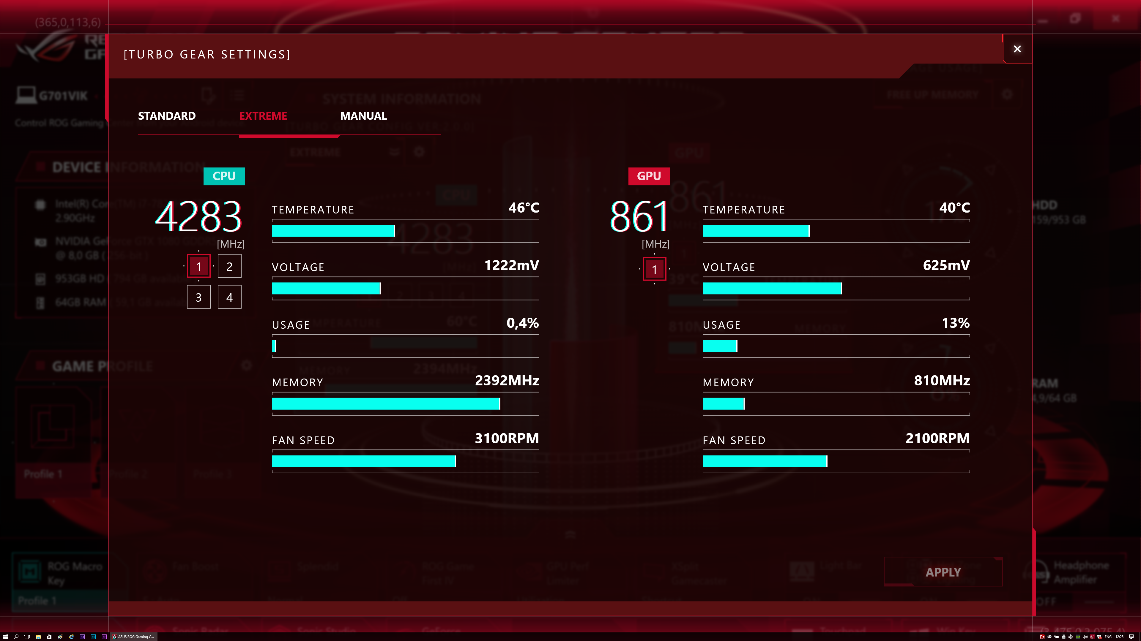 При тестировании ноутбука Asus ROG G701VIK использовался разгонный профиль Extreme, который является своего рода профилем по умолчанию.