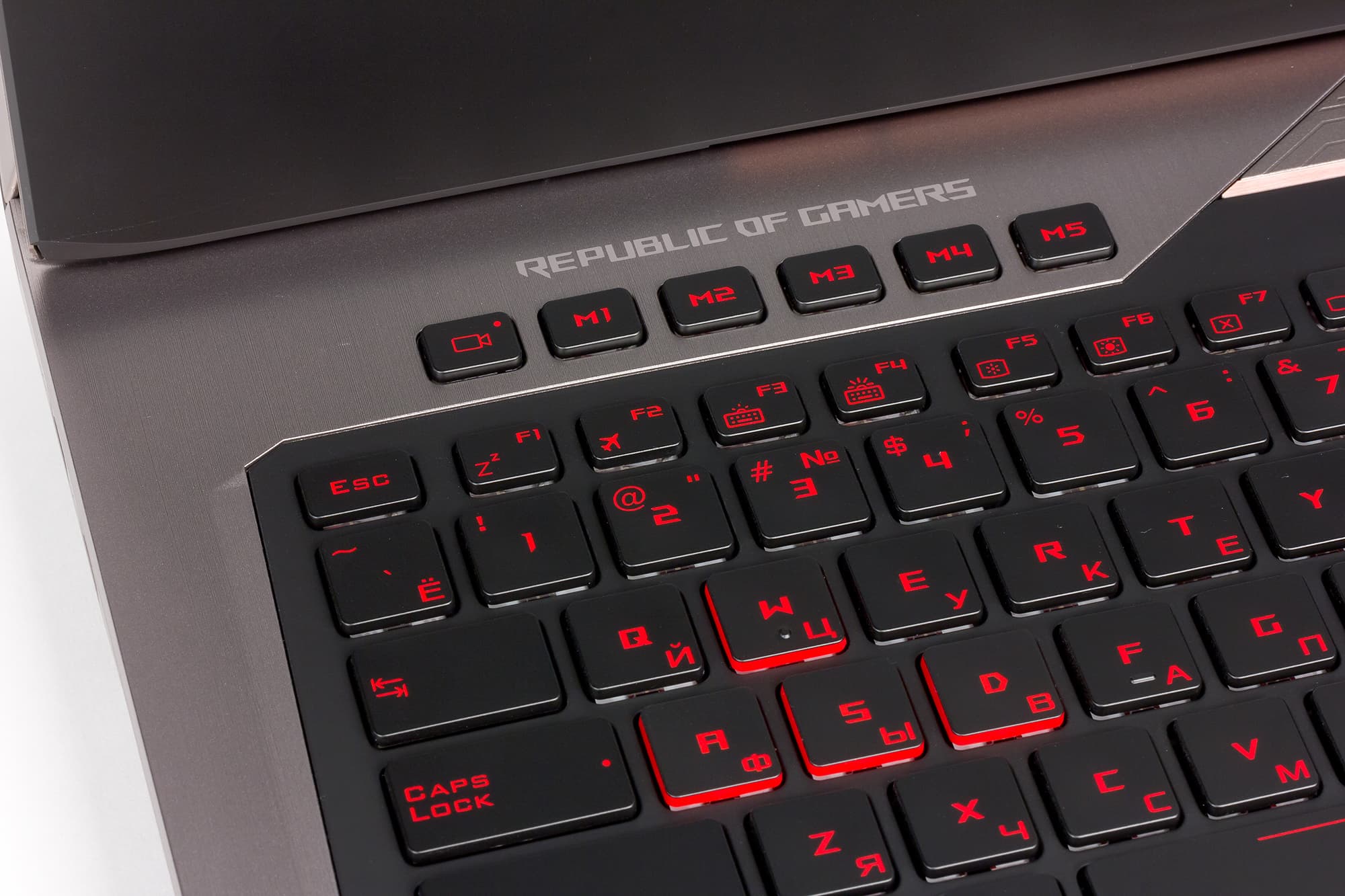 Клавиши W, A, S, D, которые наиболее часто используются в играх, немного отличаются от всех остальных. Если в прочих клавишах боковая окантовка черная, то у игровых клавиш W, A, S, D боковые поверхности красного цвета, что выделяет их в отдельную группу.