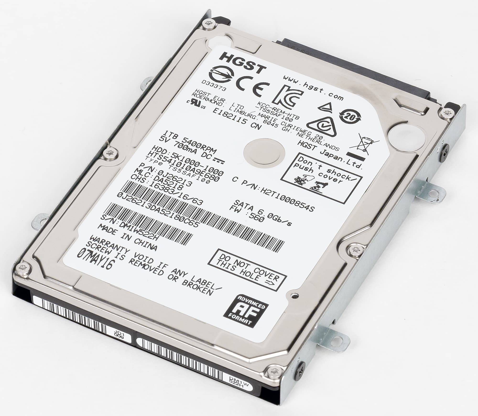 Кроме двух разъемов M.2 в ноутбуке имеется и стандартный SATA-разъем для установки 2,5-дюймовых накопителей. В нашем случае в него был установлен HDD HGST Travelstar 5K1000 емкостью 1 ТБ.