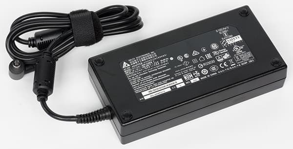 Комплект поставки минимален. Кроме самого ноутбука, в него входит адаптер питания мощностью 230 Вт (19,5 В; 11,8 А) и стандартный комплект документации. Отметим, что ни коробка, ни адаптер питания в данном случае не изменились — у предыдущих моделей ноутбука они были точно такими же.