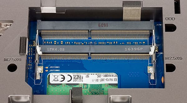 Для установки SO-DIMM-модулей памяти в ноутбуке предназначено четыре слота, однако при частичной разборке ноутбука пользователю доступно лишь два слота.