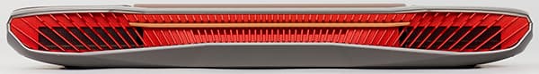 На заднем торце корпуса расположена вентиляционная решетка красного цвета для выдува горячего воздуха.