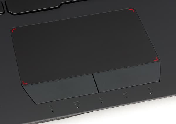 В ноутбуке Asus ROG G752VSK используется классический двухкнопочный тачпад. По форме тачпад не прямоугольный, и трапециевидный. Нижнее основание этой трапеции имеет размер 122 мм, а верхнее — 117 мм. Высота трапеции составляет 70 мм.