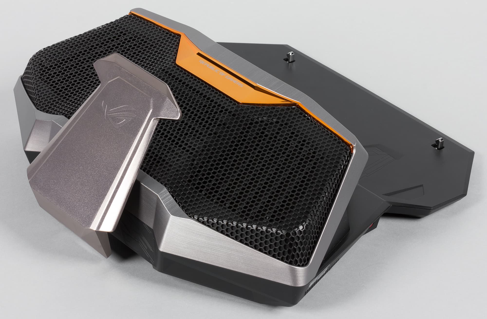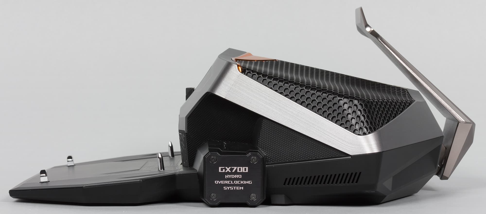 Док-станция жидкостной системы охлаждения к ноутбуку Asus ROG GX700VO называется Hybrid Overclocking System (гибридная система разгона). Все дело в том, что при подключении этой системы к ноутбуку происходит автоматический разгон процессора и видеокарты.