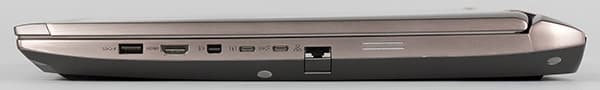 На правом торце имеется еще один порт USB 3.0, порт USB 3.1 (Type C), порт Thunderbolt (Type C), видеовыходы HDMI и Mini-DisplayPort, а также разъем RJ-45 с откидывающейся крышкой.