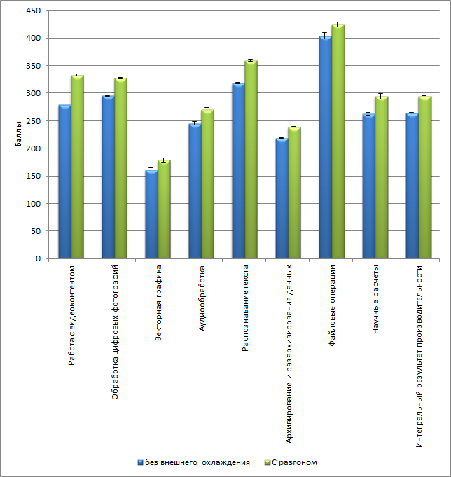 Для удобства сравнения представим результаты тестирования на диаграммах: