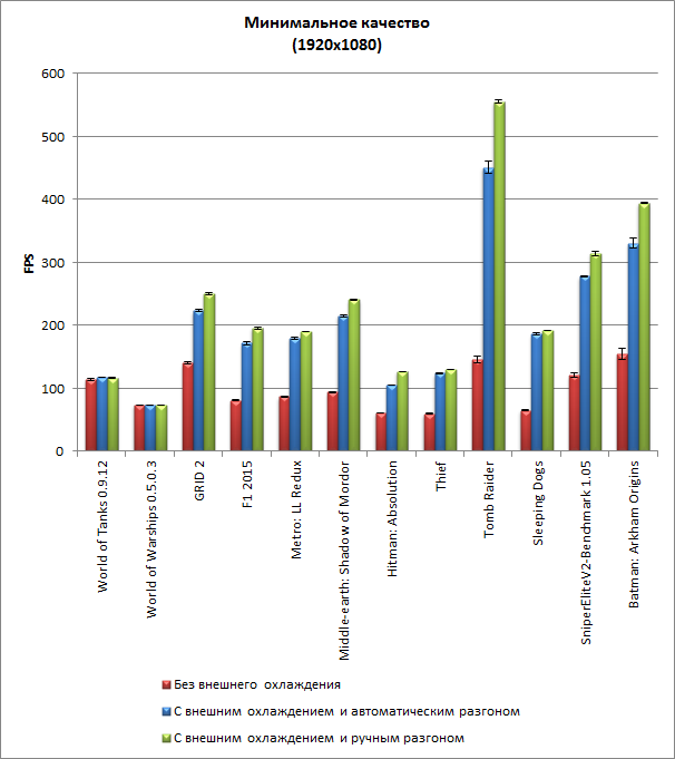 | Игровой тест | Результат, FPS (1920×1080; минимальное качество) | ||