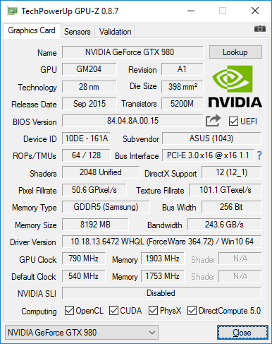 Напомним, что Nvidia GeForce GTX 980 существенно отличается от Nvidia GeForce GTX 980M: