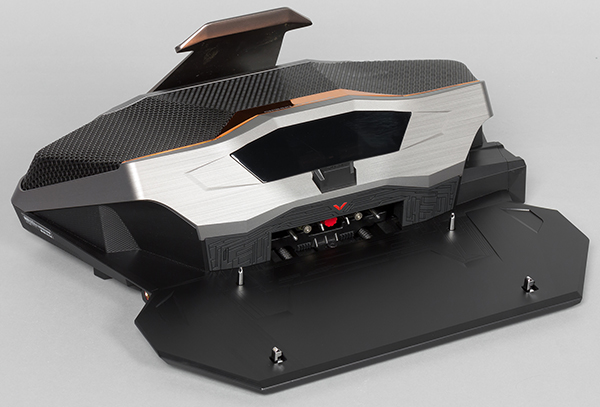 Уникальная особенность ноутбука в том, что он комплектуется внешней системой жидкостного охлаждения, при подключении к которой происходит автоматический разгон процессора, памяти и видеокарты. Но даже при работе без блока жидкостного охлаждения производительность ноутбука рекордно высока, и по интегральной производительности в неигровых приложениях он превосходит большинство настольных ПК на базе процессоров семейства Intel Core i7 (Skylake). Подключение к внешней жидкостной системе охлаждения превращает этот ноутбук в стационарное решение. В таком режиме работы интегральная производительность ноутбука в неигровых приложениях на 11% выше, чем без подключения к блоку охлаждения.