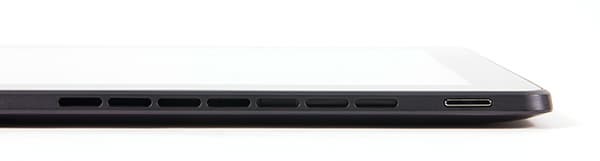 На верхнем торце планшета (с левой стороны) расположена кнопка питания.