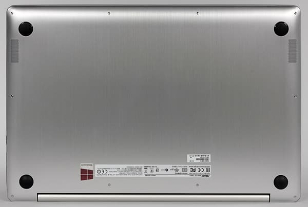 Нижняя панель корпуса и рабочая поверхность, обрамляющая клавиатуру и тачпад, выполнены из алюминия светло-серебристого цвета. Поверхность матовая и не маркая.