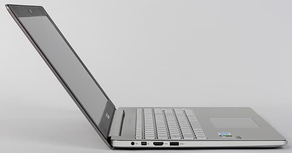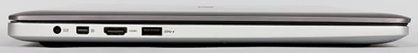 На левом торце корпуса расположен порт USB 3.0 с функций заряда мобильных гаджетов, видеоразъемы HDMI и Mini-DisplayPort, а также разъем питания.