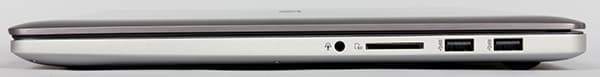 На правом торце имеется еще два порта USB 3.0, комбинированный аудиоразъем типа миниджек, а также слот для SD-карт памяти.