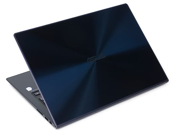Крышка ноутбука сделана из шлифованного металла темно-синего цвета с рисунком в виде концентрических колец. В центре этих колец размещен традиционный логотип Asus. Но самое главное — что металлическая крышка ноутбука целиком закрыта закаленным стеклом Corning Gorilla Glass 3.