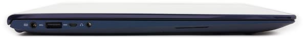 На левом торце корпуса расположен порт USB 3.0, разъем Micro-HDMI, комбинированный аудиоразъем типа миниджек и разъем питания.