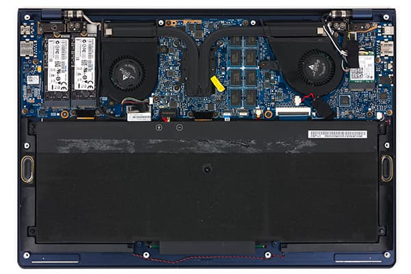 Сняв панель, можно получить доступ к системе охлаждения, накопителям и модулю беспроводной связи.