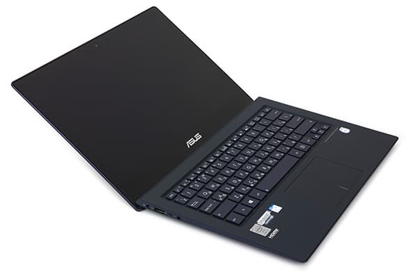 Экран в этом ультрабуке имеет безрамочную конструкцию, то есть вся плоскость экрана закрыта стеклом, что создает иллюзию отсутствия рамки экрана. Сверху экрана по центру расположена веб-камера и миниатюрные отверстия двух микрофонов. Ну а снизу на рамке расположен логотип ASUS.