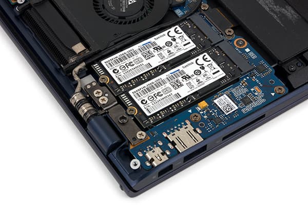 Подсистема хранения данных в Asus Zenbook UX301LA представляет собой два SSD-накопителя SanDisk SD6SP1M-256G-1002 по 256 ГБ каждый, которые объединены в RAID-массив уровня 0.