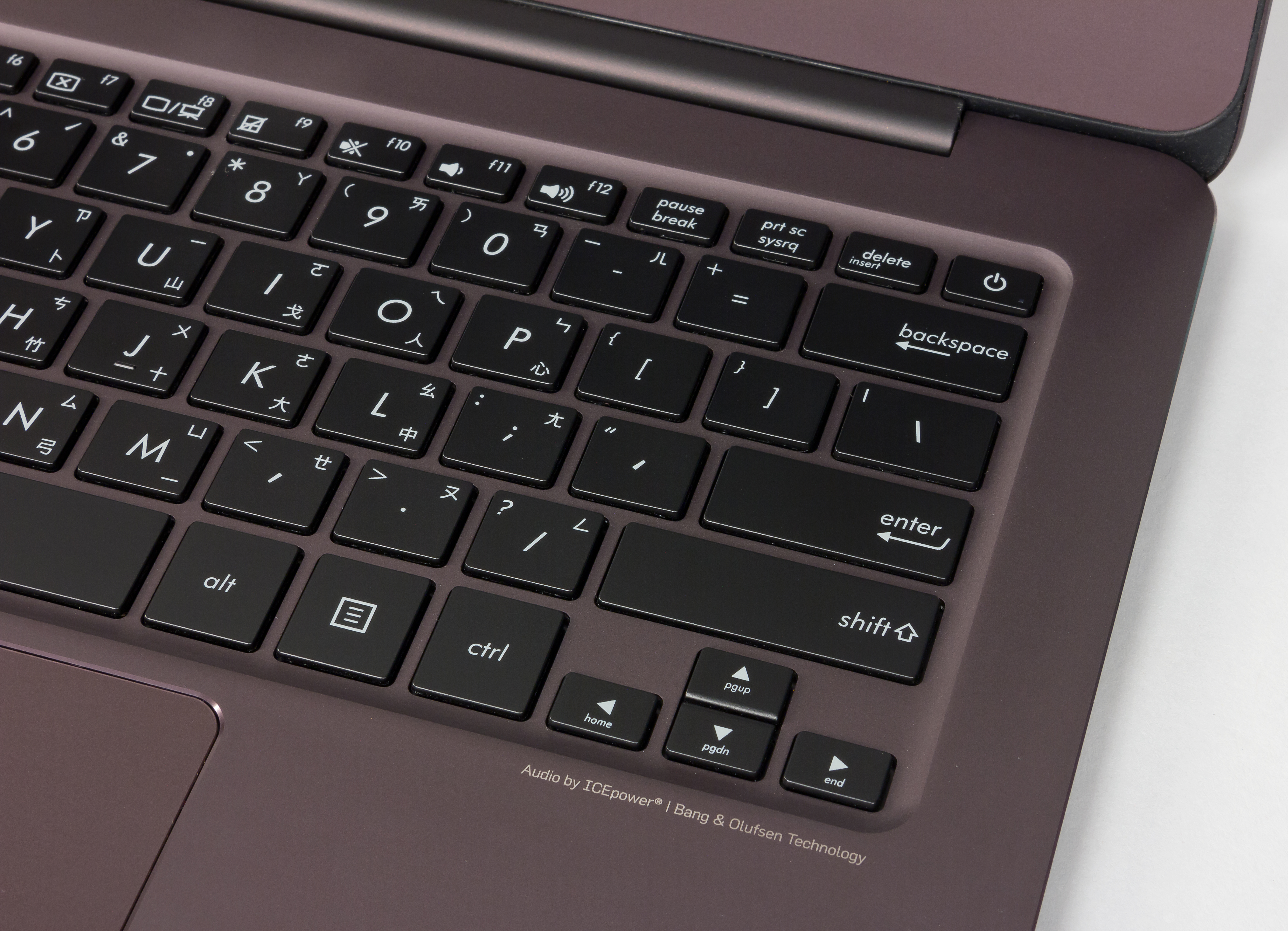 Клавиши на клавиатуре имеют размер 16×16 мм (стандартные клавиши имеют размер 15×15 мм), а поверхность под клавиатурой немного углублена. В данном модели подсветка клавиш не предусмотрена.