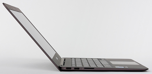 На левом торце корпуса ультрабука расположены два порта USB 3.0 и слот для SD-карт памяти.