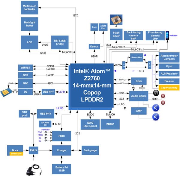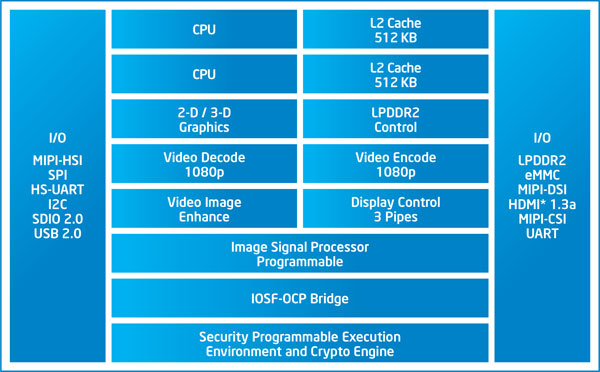 Впрочем, остальные компоненты платформы также более чем скромные. Контроллер памяти поддерживает до 2 ГБ LPDDR2-800, т. е. и объем, и скорость работы на сегодняшний день — грустные.