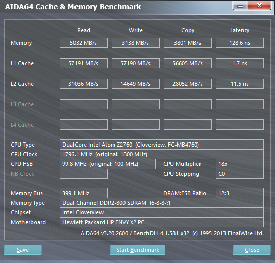 Итак, скорость процессора настолько низка, что прогон любых специализированных бенчмарков, даже очень старых (типа Cinebench 10), не имеет никакого практического смысла. Хотя для интересующихся можно назвать цифры: 602/1707 (одно ядро/все потоки, рендеринг идет в 4 потока) и 460 для графики. Для примера, Core i5 поколения Ivy Bridge даст цифры порядка 5000/10000 и 5500-6000 для графики. Комментарии, как говорится, излишни.