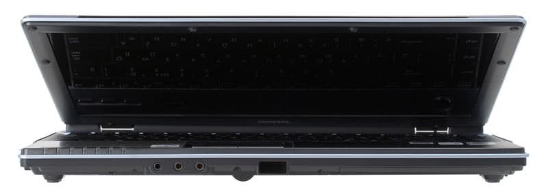 Большую часть заднего торца занимает аккумуляторная батарея . Справа от нее — выход DVI-D, слева — два порта USB и разъем для замка Кенсингтона. Левее USB портов — заглушка, на месте которой может быть разъем антенны цифрового телевидения DVB-T.