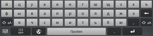 В общем, теперь для того, чтобы писать письма по-русски, вбивать русские контакты в адресную книгу, а также кириллические поисковые запросы в строку поиска, достаточно сделать одно-единственное действие: когда виртуальная клавиатура уже открыта, надо нажать на значок глобуса и выбрать «Русский». Соответственно, чтобы переключиться назад на английский, надо сделать обратное действие. В чем плюс? Удобство и очевидность. Главное, что не требуется менять интерфейс на русскоязычный (это полезно, если вы привыкли к англоязычному и предпочитаете пользоваться им). Кроме того, не надо лезть ни в какие настройки и даже перезагружаться. Но есть и минус: переключение раскладки оказывается более длительным процессом, чем, например, на iOS (где достаточно одного клика по значку глобуса).