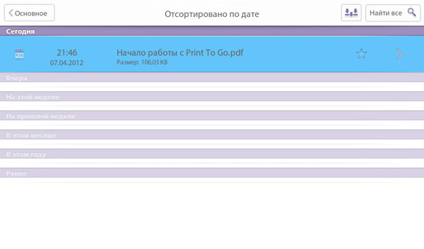 Наряду с офисным пакетом Documents To Go (который был и в первой версии ОС) теперь на PlayBook есть и Print To Go. Исходя из названия приложения можно решить, что это для печати, но на самом деле Print To Go, скорее, можно сравнить с сервисами типа Dropbox. Это приложение нужно для беспроводной передачи документов на планшет.