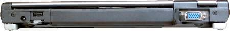 На ней расположен разъем питания, порт USB и порт VGA для подключения внешнего монитора. Обратите внимание: резиновые крышки, прикрывающие порты на тыльной стороне корпуса, приоткрыты мной специальным образом; на самом деле, крышки просто так не откидываются и эластично становятся на место после изъятия разъема.