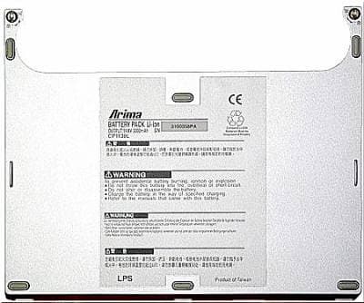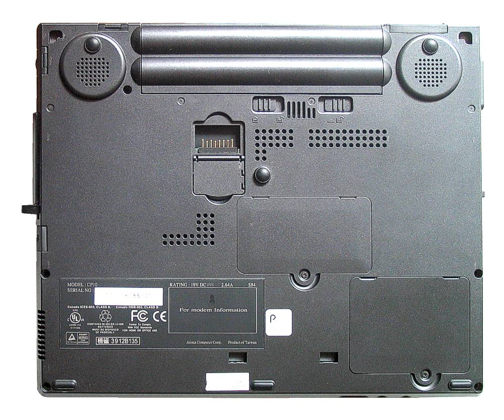Взглянем на ноутбук снизу. Шильдик извещает вас, что модель BLISS 2060 собрана на фабрике одного из представителей тайваньского «ноутбукостроения», компании Arima. О качестве и надежности изделий этой компании косвенно может говорить тот факт, что, к примеру, у Arima частенько располагаются OEM-заказы на изготовление портативных ПК под брэндами Hewlett-Packard (ранее — Compaq), NEC, Hitachi, Matsushita и др.
