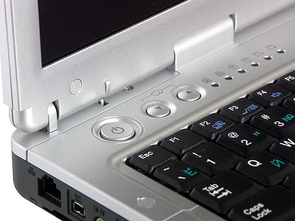Остальные индикаторы — над клавиатурой. Стоит отметить целых три индикатора активности устройств хранения информации. Кнопок быстрого вызова приложений на этой модели не предусмотрено, зато есть кнопки регулировки громкости.