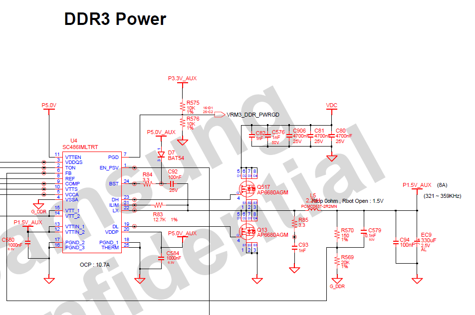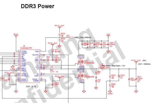 Если же все-таки вольтмод памяти понадобился, то сделать его не очень сложно. В прошлой части уже был рассмотрен вольтмод видеокарты, вольтмод памяти от него немного отличается. Стабилизатор напряжения для оперативной памяти имеет несколько больший функционал и другую схему подключения и регулирования напряжения. Поэтому подпаивание резистора в параллель штатному для уменьшения сопротивления между пином обратной связи (FB) и землёй в данном случае уже не сработает. Рассмотрим схему подключения стабилизатора питания оперативной памяти подопытного ноутбука Samsung R560: