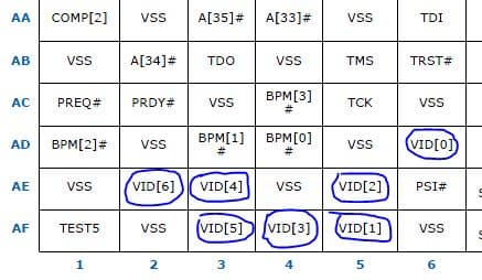 Далее весь процесс будет рассмотрен на примере процессора Core 2 Duo, в котором VID-пинов 7: