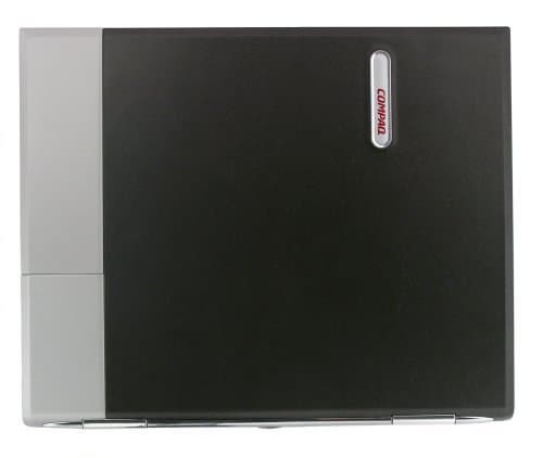 Закрытый ноутбук будет походить на красивую стильную папку для бумаг — именно на это намекает стиль, в котором выполнена надпись Compaq (модель вышла еще до слияния). Серебристая полоса также придает ноутбуку элегантности. Единственное — я бы сделал крышку другого цвета (угольно-черной, как у 6хх, а не с коричневатым оттенком, как здесь), но это уже мои придирки — вероятно, хотели, чтобы выглядело, как кожа..