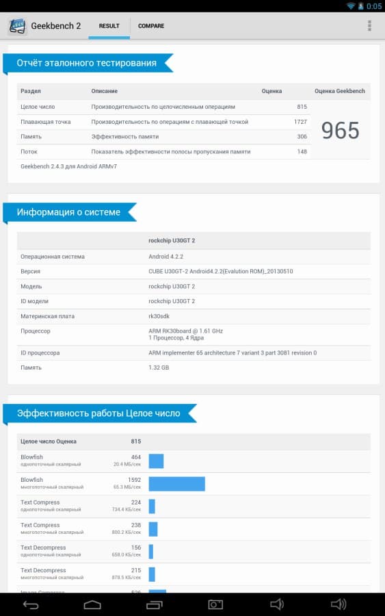 Результаты в Geekbench 2 слишком скромные. Скорее всего, бенчмарк сработал некорректно (как минимум, не распознав треть RAM), иначе такое отставание от конкурентов едва ли объяснимо.