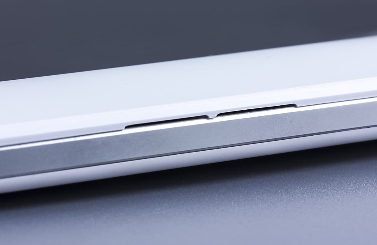 Завершает композицию откровенно неудачное решение: две прорези динамиков справа на границе передней панели и ребра планшета. В альбомной ориентации они полностью заслоняются ладонью.