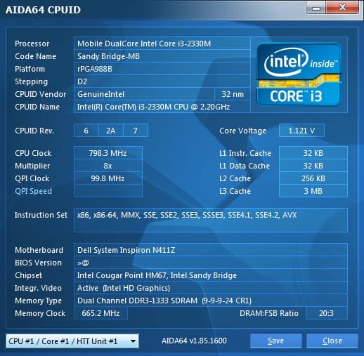 | Процессор | Mobile DualCore Intel Core i3-2330M, 2200 МГц (22×100) |