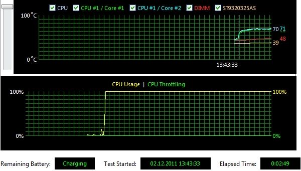 Большая и очень емкая батарея сделала свое дело: результаты теста на автономность очень хорошие. Мне ноутбука хватало на долгий день с разъездами — в дороге ноутбук не используешь, поэтому реальное время работы за день получается максимум пять часов. С Dell 14z завершаешь день с запасом, не надо нервничать, что ноутбук вот-вот сядет, да и вечером можно доделать что-то, что забыл сделать днем. Заряда хватит на просмотр двух длинных фильмов, что тоже неплохо.