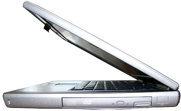 Открывая Inspiron 8600c, прилагаем усилие, но это не минус, а плюс, т.к. такая крышка не разболтается в первые дни использования и будет много лет держать нужный пользователю угол зрения.