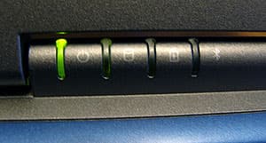 Четыре индикатора LED (питание, активность жесткого диска, состояние батареи, беспроводное подключение) расположены на петлях монитора, поэтому они доступны для контроля и тогда, когда ноутбук закрыт, а не только при открытом состоянии.