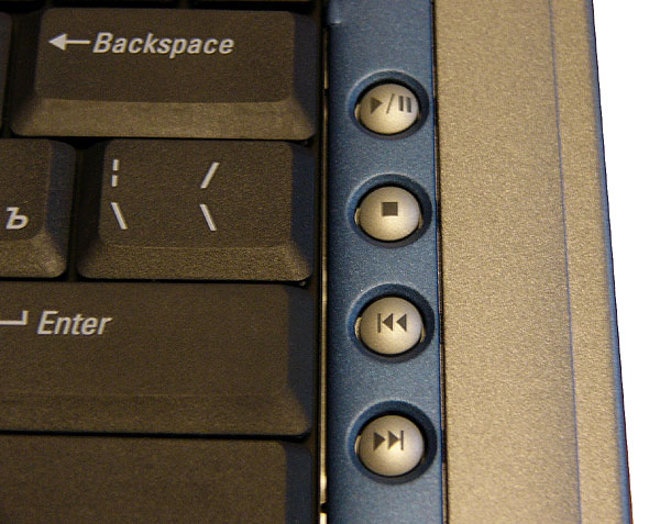 Так как ноутбук мультимедийный, Dell оснастила его отдельной панелью, состоящей лишь из четырех кнопок, находящейся справа от клавиатуры.